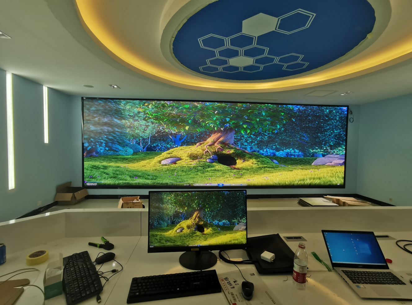 本項目案例是我公司(榮臻電子)在東北遼寧某電力公司安裝的一個P1.875小間距全彩顯示屏項目,項目的具體展示效果如下: